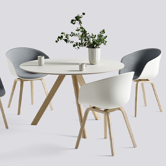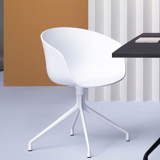 Design : Hee Welling. Universel, intemporel et ultra confortable. Versatile, About a chair s’intègre dans tous les espaces : maison, bureau, contract… La coque arrondie est réalisée en polypropylène. Ses formes accueillantes et ergonomiques vous assurent un confort optimal. About a chair illustre parfaitement le travail de la marque Hay : des lignes sobres, un style universel et intemporel qui peut braver le temps tout en restant élégant. Le fauteuil About a chair se décline en deux versions, blanche avec piètement chêne et noire avec piètement frêne teinté noir, et deux piètements différents : pied central pivotant à 4 branches et 4 pieds traditionnels.