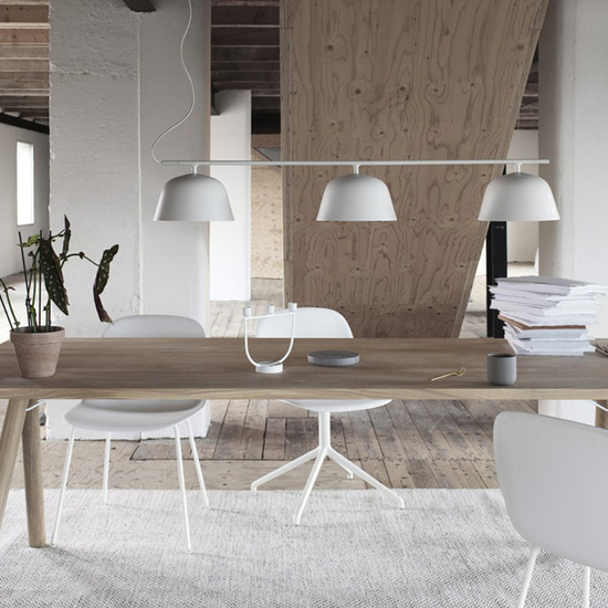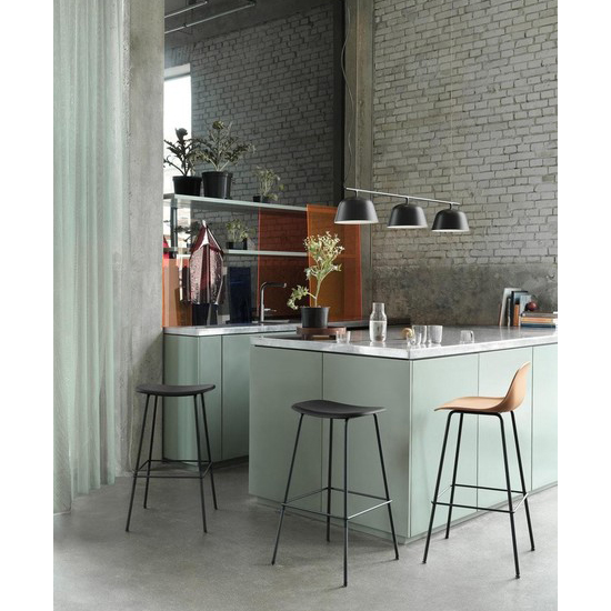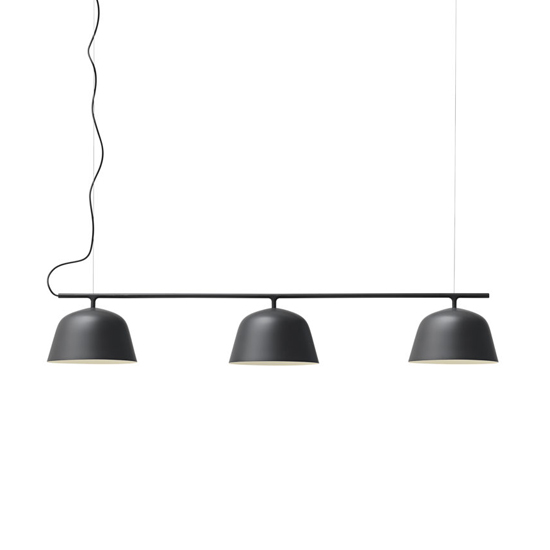 Abat-jour aluminium tourné, poli puis peint à la main. Câble caoutchouc. Dimensions : diamètre 40 cm x hauteur 23,8 cm, câble longueur 4 mètres. Existe en version suspension simple ou version rail avec 3 abats-jours.