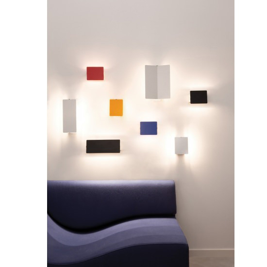 Designer : Charlotte Perriand. Appliques murales avec volet ajustable en aluminium, et structure en métal blanche. Volet disponible en rouge, jaune, ou bleu ou blanc. Plusieurs dimensions disponibles.