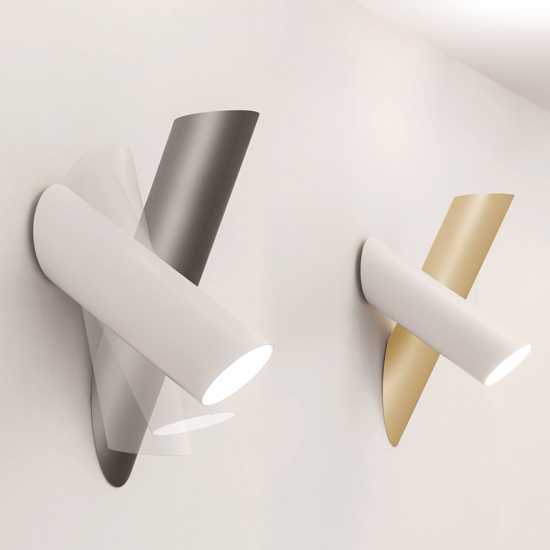 Designer : Charles Kalpakian. Appliques murales, plusieurs versions de coloris, modulables car un élément pivotant et orientable. Existe également en version plafonnier ou suspension.