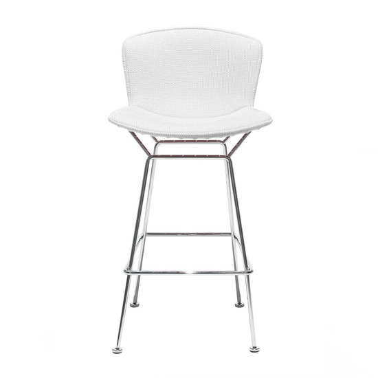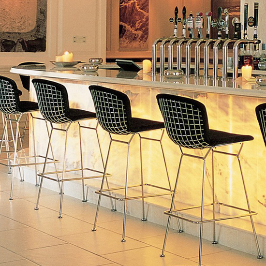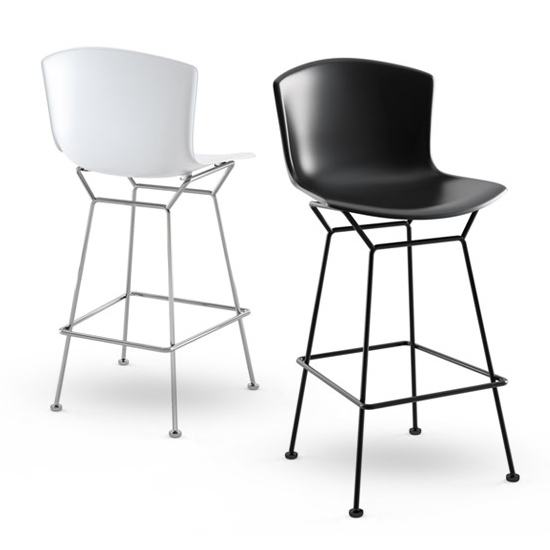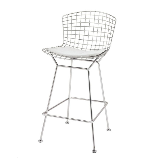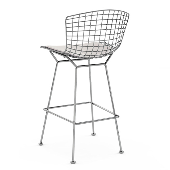 Design : Harry Bertoia. Tabouret de bar Bertoia, conçu en 1952 pour la maison Knoll International par le sculpteur et concepteur italien Harry Bertoia, connu pour son travail des métaux, ses sculptures et la création de bijoux. Le Tabouret de bar Bertoia, icône du XXe siècle, fait partie d’une collection d’assises bien particulières, travaillées en fils d’acier soudés point par point. D’allure légère et aérienne, le Tabouret de bar Bertoia n’en est pas moins élégant et robuste. Différentes finitions sont disponibles, en fils d’acier chromé et poli ou protégé d’une finition Rilsan, également disponible avec l’assise en polypropylène.