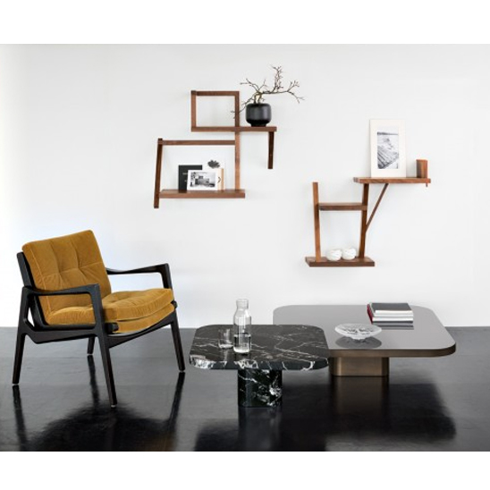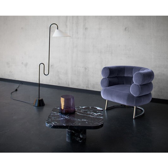 Design: Guilherme Torres. L’ensemble des tables basses Bow s’agrandit en 2019: la Bow Table No. 3 est désormais également disponible dans une version entièrement en marbre blanc ou noir. En combinaison avec les tables en métal de différentes dimensions, il crée un contraste intéressant entre les matériaux.