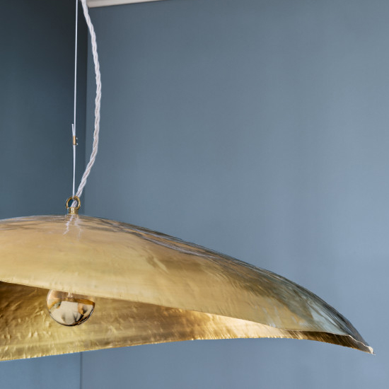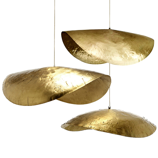 Designer : Paola Navone. Suspension en laiton mat, puissance max. 18 W, 220 Volt, douille de lampe E 27, ampoule non fournie. Existe dans 2 diamètres.