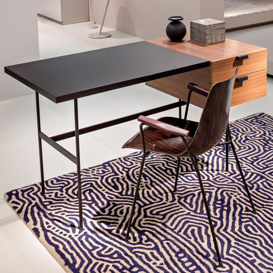 Design : Pierre Paulin. Réédition originale à partir des moules d’origine du fabricant de l’époque, de la chaise créée par Pierre Paulin en 1953. Chaise avec coque ergonomique en multiplis de hêtre résiné teinté brun foncé finition brillante, moulé et pressé. Piétement en acier rond laqué noir avec embouts-patins de protection. Bridge avec coque ergonomique en multiplis de hêtre résiné teinté brun foncé finition brillante, moulé et pressé. Accoudoirs en hêtre massif teinté à l’identique de la coque. Piétement en acier rond laqué noir avec embouts-patins de protection.