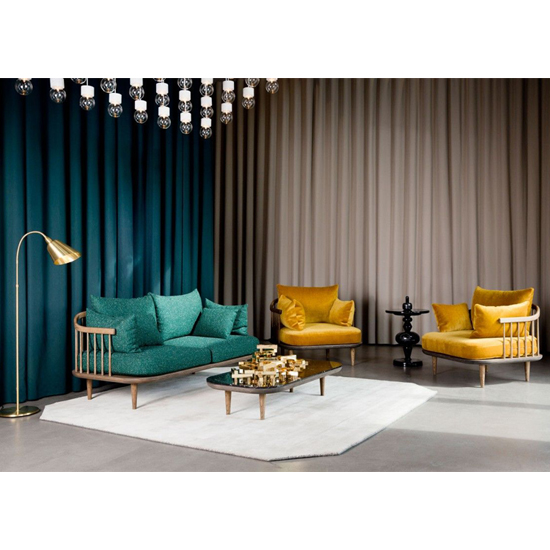 Dans le plus pure style nordique, le fauteuil Fly présente un superbe travail du bois et une structure à barreau sculpturale et incroyablement aérienne. Les dimensions XXL, la profondeur d’assise et le moelleux des coussins assurent un confort optimal. Fly est un vrai cocon dans lequel on peut se lover, s’avachir, se détendre… Fabriqué artisanalement au Danemark, le fauteuil Fly nécessite un savoir-faire d’excellence. Les lignes simples et nettes mettent en valeur le travail exceptionnel du bois. Le chêne blanchi est soigneusement débité en baguettes qui sont tournées et amincies. La finition huilée donne au bois une superbe patine qui s’embellit encore avec le temps. Les coussins sont recouverts d’un tissu haute qualité. Les 3 coussins de dossier (fournis) peuvent être placés comme vous le souhaitez.