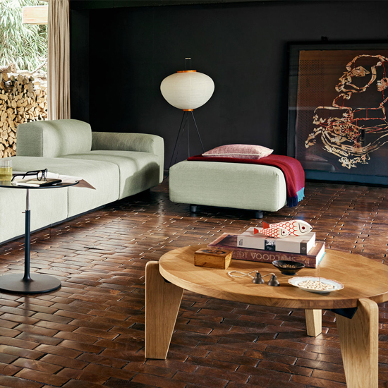 Design : Jean Prouvé, 1944. La table basse ronde Guéridon Bas porte l’inimitable signature du créateur et ingénieur français Jean Prouvé. Disponible en différentes essences de bois, cette table pleine de retenue s’adapte aux aménagements les plus divers.
