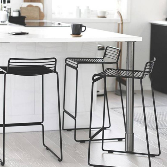 Design : Hee Welling. L’idée de la collection Hee est née de l’ambition d’un designer, Hee Welling, de créer une chaise favorable à l’environnement en la produisant dans un seul et même matériau : l’acier. La fabrication de Hee permet ainsi de limiter les transports entre les différents lieux de production et d’optimiser le recyclage de l’acier. Cette volonté minimaliste affichée se retrouve également dans la conception du produit. Fabriqué d’un fil d’acier de 11 millimètres, le fauteuil bas Hee arbore des lignes simples sans superflu ni aucun ornement. Sa forme essentielle et ultra lisible s’apparente à une esquisse, un dessin au crayon tridimensionnel… Hee est très confortable malgré son apparente rigidité.