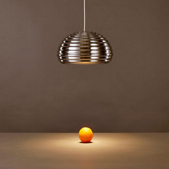 Design : Achille & Pier Giacomo Castiglioni. Splügen Bräu est une suspension devenue une icône du design. La suspension Flos Splügen Bräu Castiglioni devient célèbre en les insérant dans le projet de la célèbre brasserie du Corso Europa de Milan dans les années 60, en éclairant avec un style raffiné n’importe quel lieu et évidemment en unissant le l’utile à l’esthétique. Grâce à son éclectisme, Flos Splügen Bräu deviendra un véritable “must” au fil du temps, objet fondamental pour tous les amateurs de design ou simplement pour ceux qui apprécient la beauté et l’élégance à l’état pur. Le diffuseur de la lampe travaillé en aluminium brillant confère à la lampe son unicité. Le réflecteur est de plus recouvert d’une laque transparente qui en protège la finition brillante. Le câble électrique est habillé de matériau plastique opaque (PVC), alors que la rosace est en blanc brillant. Ampoule incluse 1 x 70 W E27 HSGSA/S.