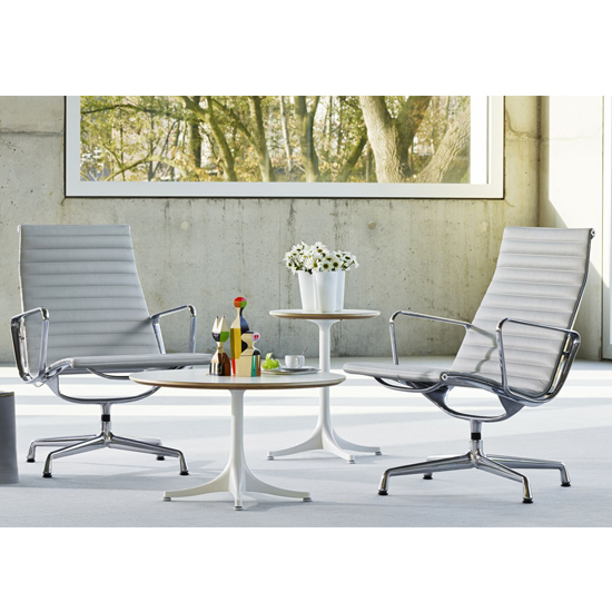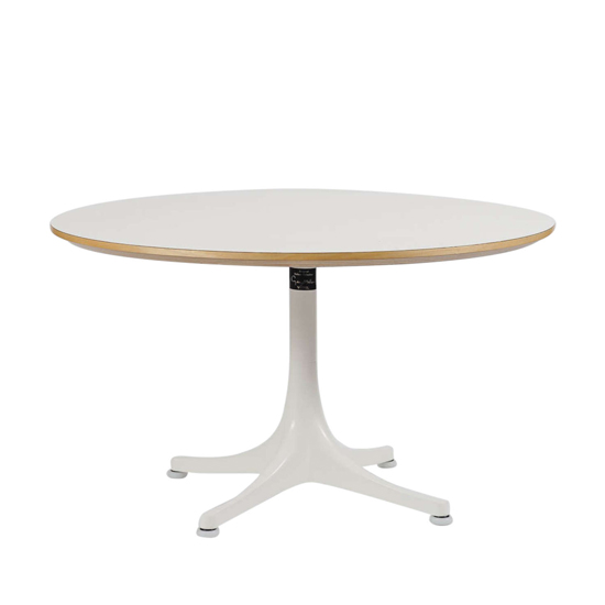 Design : George Nelson, 1960. On retrouve cet amour du détail dans toutes les créations de George Nelson, comme dans ce modèle de table d’appoint. Les chants biseautés vers le bas soulignent le placage en bouleau visible du plateau. Les tables sont disponibles en deux tailles et hauteurs différentes – Table 5451 et Table 5452 – et peuvent être utilisées dans les environnements les plus divers.