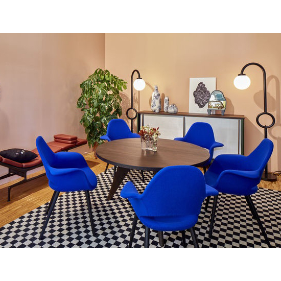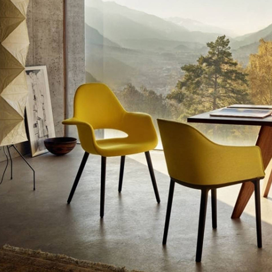 Charles Eames et Eero Saarinen ont créé l’Organic Chair en 1940 à l’occasion du concours « Organic Design in Home Furnishings » organisé par le Museum of Modern Art à New York. Le petit fauteuil de lecture extraordinairement confortable grâce à sa coque de forme organique confortablement rembourrée existe également en version Organic Highback avec un dossier plus haut.