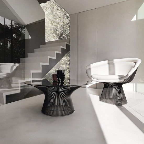 Design : Warren Platner. Cette table d’appoint, disponible en deux tailles, fait partie de la série d’objets de la Collection Platner créée dans les années 60. La magnifique forme et l’étonnant effet produit par les tiges d’acier constituent le piètement de la table basse. La finesse de l’acier et du bronze fabriqués par Knoll International ne se réduit pas à un savoir-faire hors du commun, mais apporte une aura emblématique à l’objet. Entre joaillerie et mobilier.