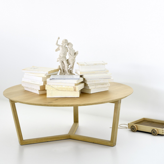 Design:Heidi Earnshaw. La table basse Tripod se caractérise par des lignes épurées et une esthétique contemporaine. Fabriquée en chêne massif, cette table basse est également disponible en noyer.