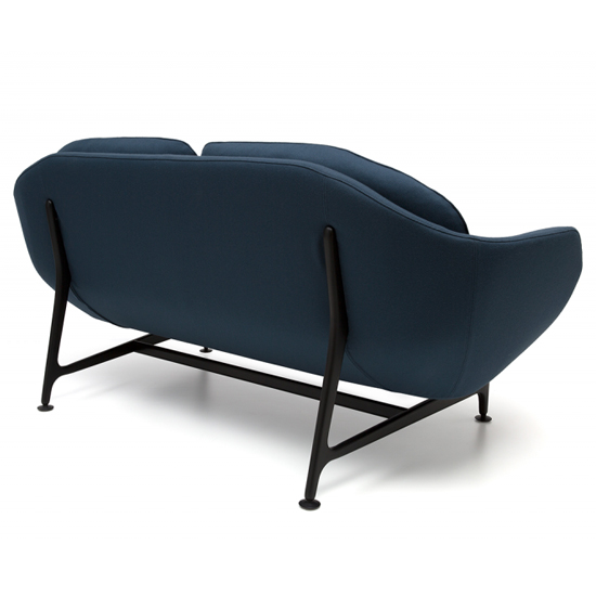 Design Jaime Hayon. Fauteuil, canapés deux et à trois places. Coque en polyurethane expansé, sans CFC, avec sangle élastiques, revêtement en tissu ou cuir amovible. Piètement en fonte d’aluminium brillant ou bien aluminium verni en couleur noir mat ou bien bronze satiné. Pieds en matière plastique. Coussins assise en polyurethane expansé et ouate de polyester. Coussins dossier en plume avec âme en polyurethane éxpansé et ouate de polyester. Coussin supplémentaire, de forme carrée, rembourrage en plume. Revêtement des coussins en tissu ou en cuir déhoussable.
