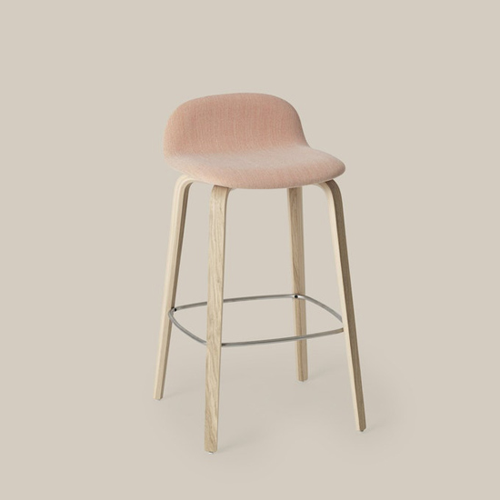 Design : Mika Tolvanen. Signé par le designer finlandais Mika Tolvanen, ce tabouret de bar affiche une élégance discrète en phase avec l’esprit du “New Nordic design”. La coque en contreplaqué de chêne cintré est ample et confortable. Le dossier bas ainsi que le repose-pieds en acier assurent une bonne ergonomie. Les lignes douces et courbes de l’assise aux bords arrondis s’harmonisent parfaitement avec le piètement élancé et longiligne en chêne massif. Disponible en deux hauteurs. Disponible en tissu également.