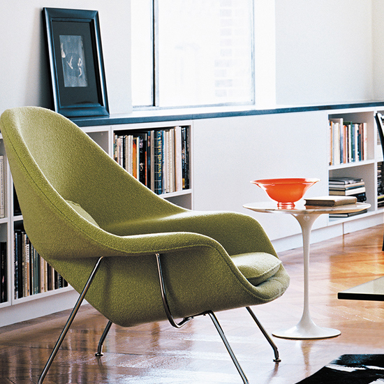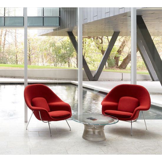 Design : Eero Saarinen. Le Womb Chair Relax – Fauteuil piétement chrome créé par Eero Saarinen pour la marque Knoll International est un siège ultraconfortable au design ultracélèbre aussi. Nées des recherches du maître du design finno-américain Eero Saarinen sur de nouvelles formes et matériaux destinés au mobilier dans les années 1940, et notamment sur la création de coques de siège en mousse et fibre de verre, les collections Womb, Tulip et Conference sont des icônes du fabricant Knoll International et du mobilier design.